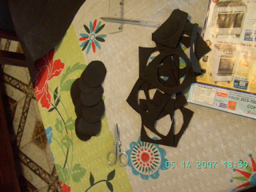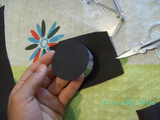 Pegue o emborrachado e desenhe nele o tamanho da sua roda. Eu usei o fundo do copo.