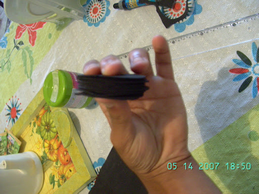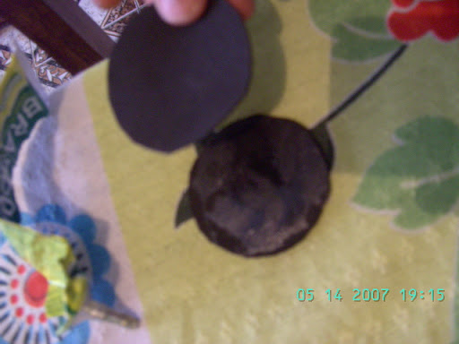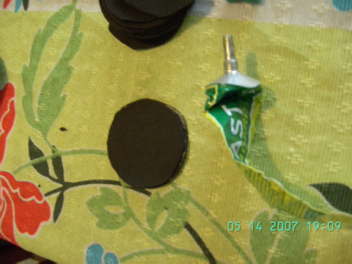 Agora pegue a roda e a base, passe cola no meio da roda e enfiei a base no meio e deixe colar.